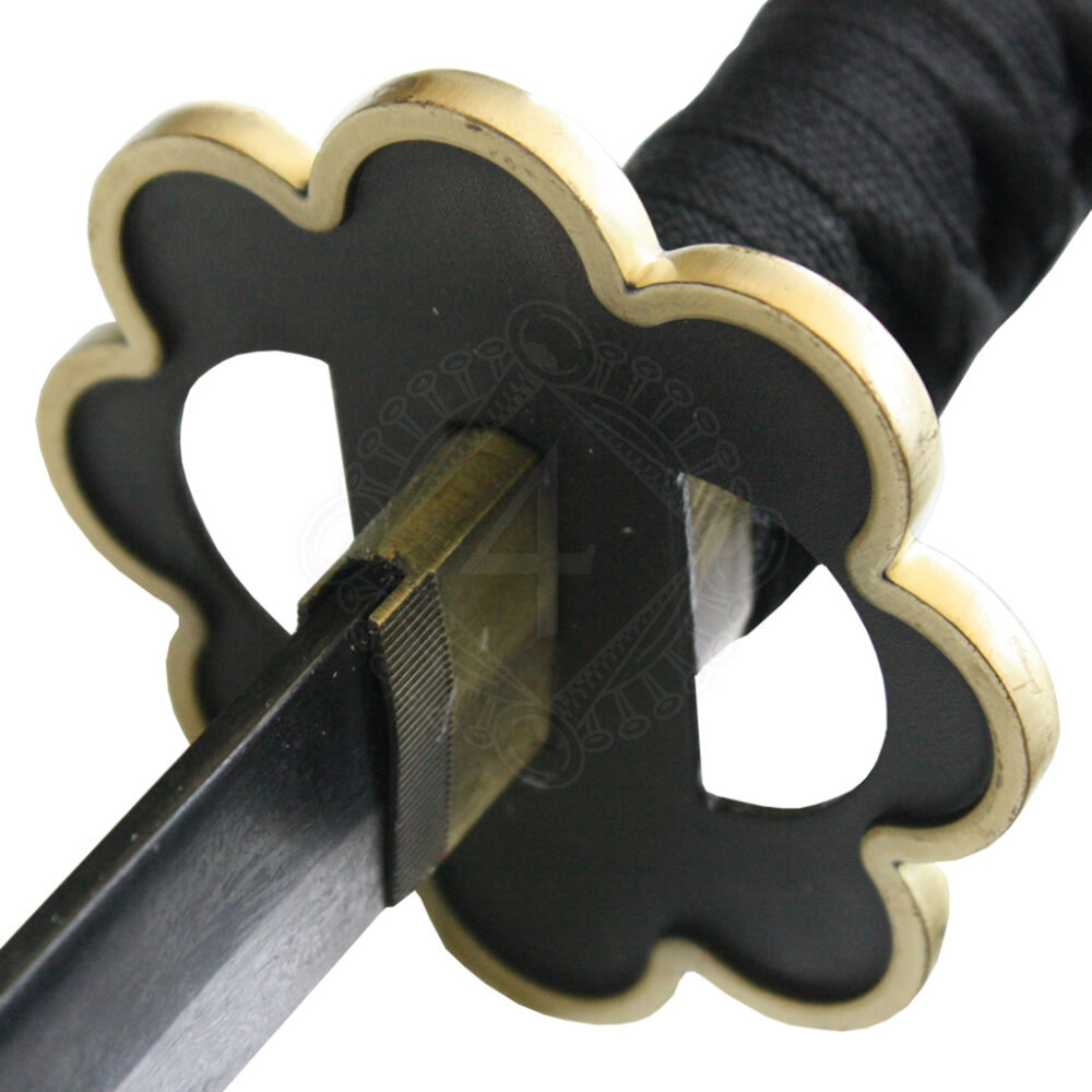 Die Klinge ist aus Kohlenstoffstahl. Die schwarz lackierte Scheide aus Holz ist mit traditionellen Familienwappen (Mon) versehen. Da der Griff aufgeleimt ist, raten wir davon ab, das Schwert auseinanderzubauen. Weitere Produktinformationen ...
