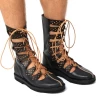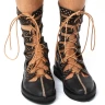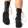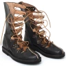 Diese luftigen Schuhe reichen bis ca. 1/3 der Schienbeine. Sie werden mit Lederschnur durch Laschen in dem durchgeschnittenen Oberleder zusammengeschnürt. Die Laschen sind gestanzt. Das Vorderblatt ist aus zwei Hälften genäht. Weitere Produktinformationen ...