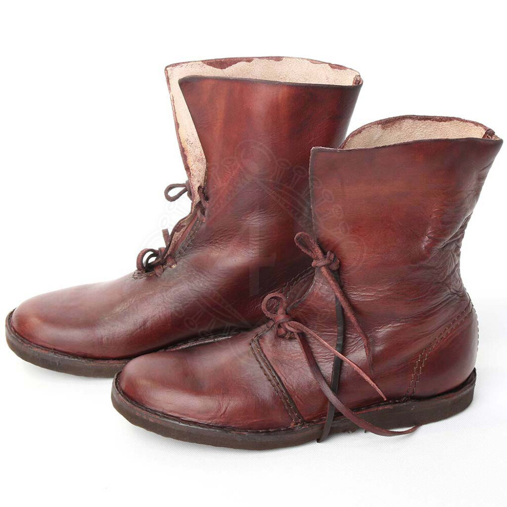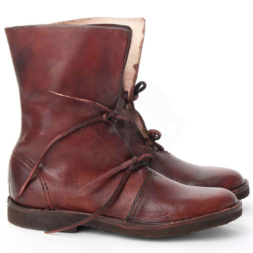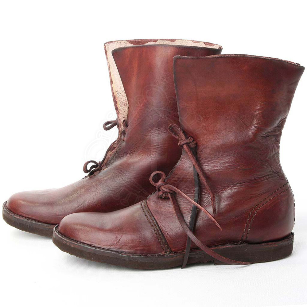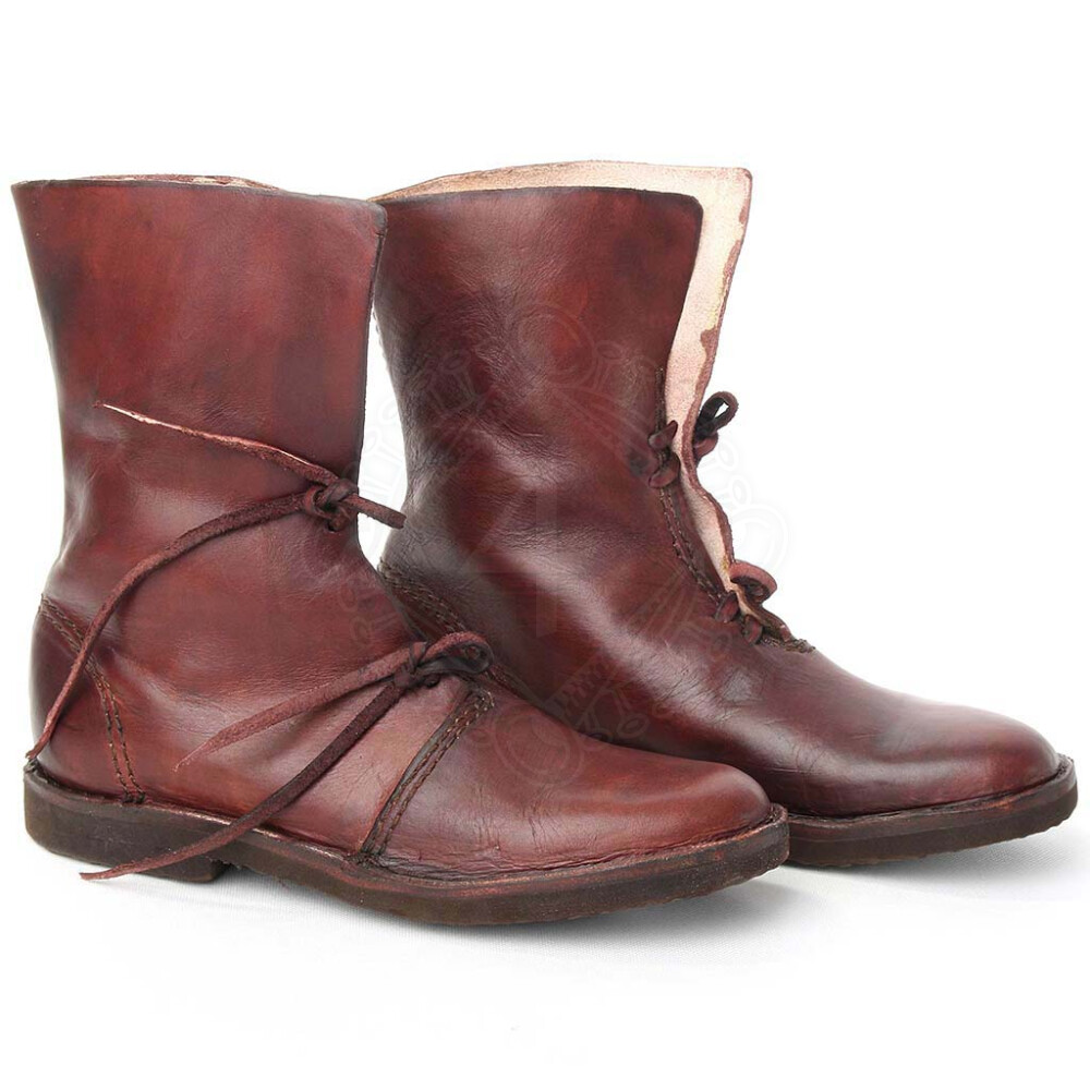 Diese halb-hohe Lederschuhe haben einen geöffneten Schaftteil. Sie werden mit zwei Lederriemen an der Beuge geschlossen. Das Oberleder der Lederschuhe Wallfahrer besteht aus echtem, ca. 2mm starkem, Rindleder hergestellt. Für eine lange Nutzungsdauer ist das Leder mit Palmöl, tierischem Fett und Bienenwachs behandelt. Die Innensohle ist aus 4mm starkem, gewalztem Rindsleder gefertigt. Weitere Produktinformationen ...