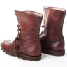 Bitte beachten Sie: Der Teil der Stiefel über den Knöchel ist sog. „Design-Schaft“, der keine Schutzfunktion ausübt, die bei modernen Stiefeln üblich ist. Die Schafthälften liegen nicht ganz aneinander und die eventuelle keilförmige Öffnung ist mit keiner Lasche unterlegt. Dies ist eine natürliche Eigenschaft dieser Stiefel, die in keiner Weise den Wert oder Funktionsfähigkeit der Schuhe verringert. Die Größe des Keils kann man durch die Dicke der Socken beeinflussen.