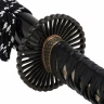 - Griffwicklung aus schwarzem Leder im klassischen Hineri-Maki-Stil.