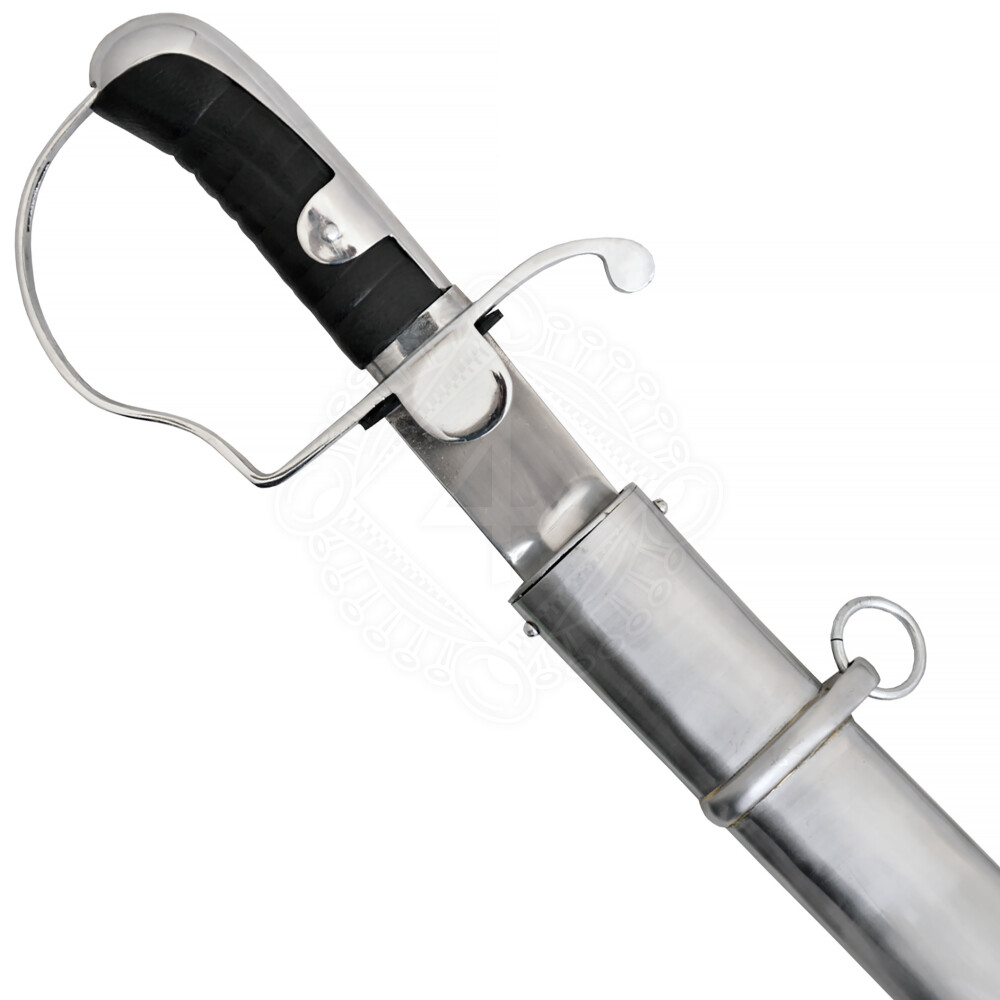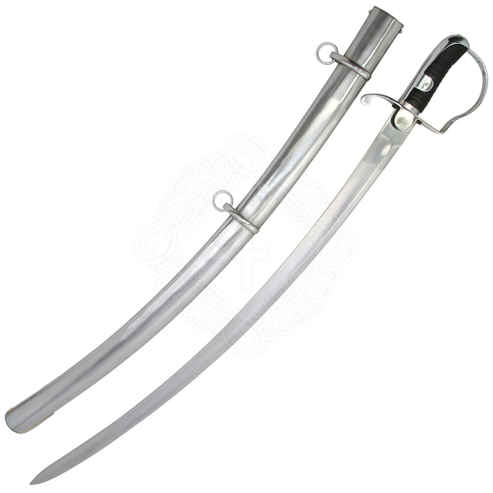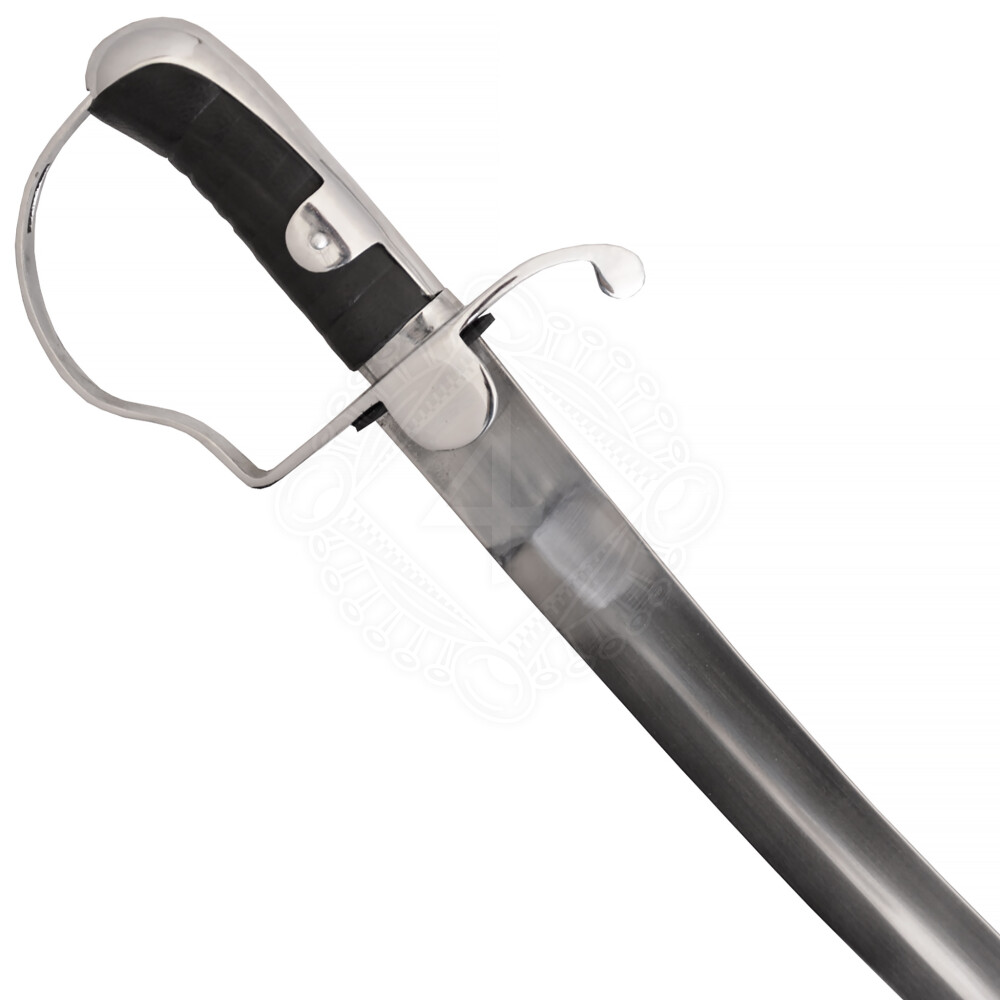Die Klinge dieses Replikats dieses berühmten Säbels ist aus Karbonstahl geschmiedet, sorgfältig geschliffen und poliert. Sie ist ungeschärft. Die Griffpartie und die passende Säbelscheide sind ebenfalls aus Stahl gefertigt. Der Griff selbst ist mit Leder überzogen.