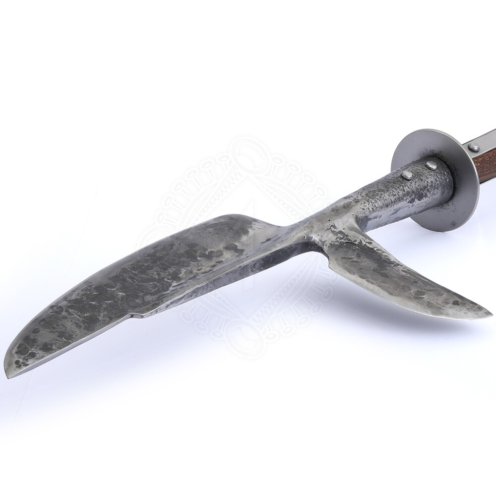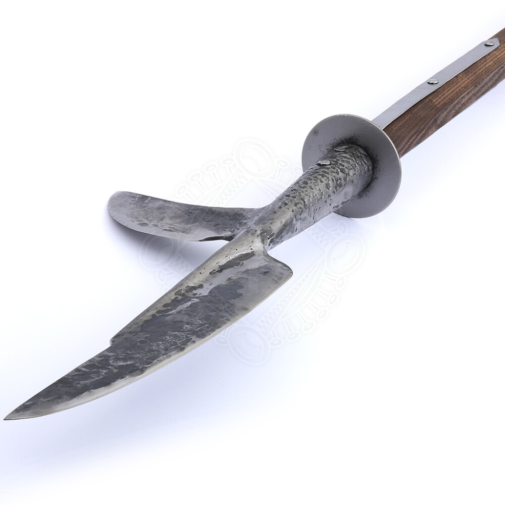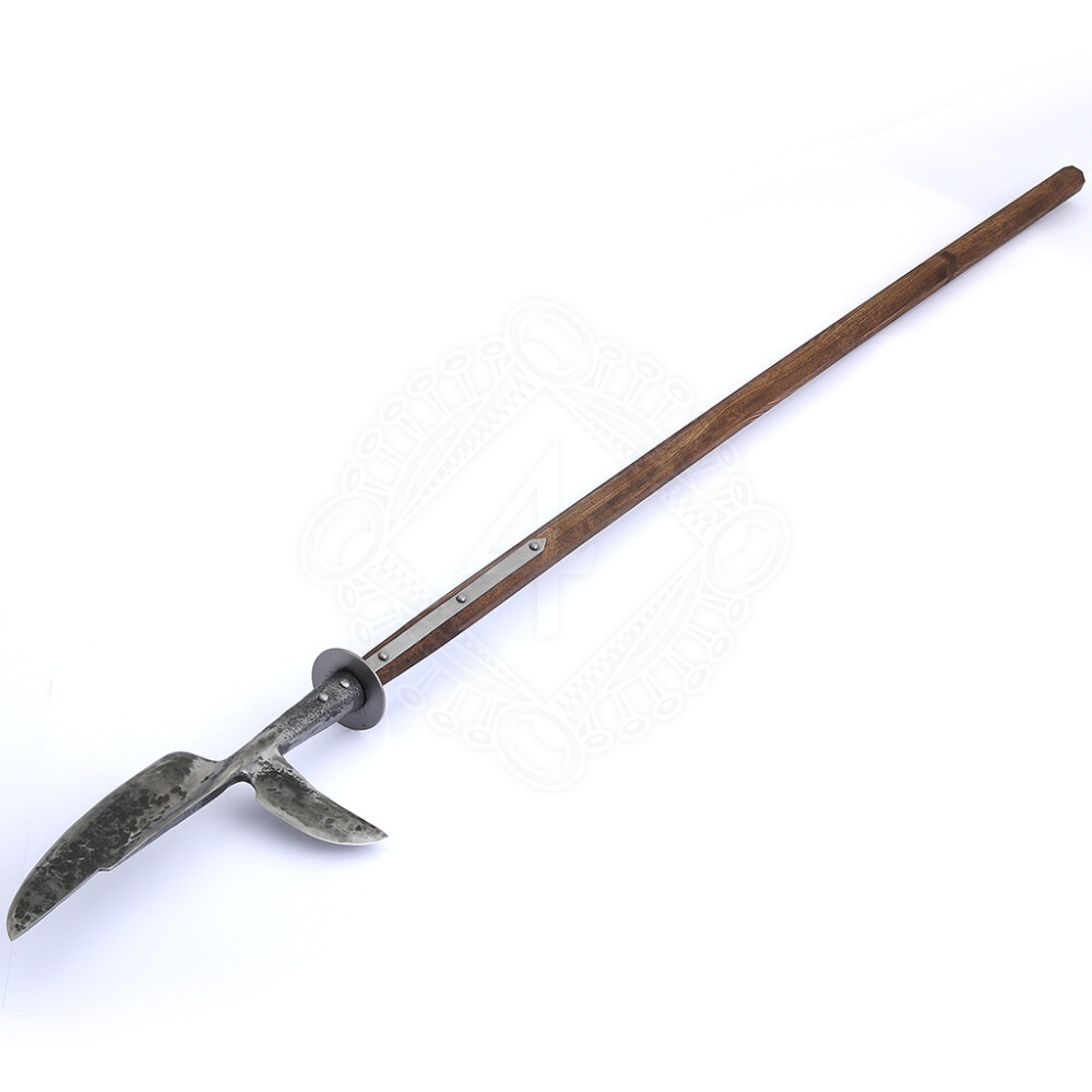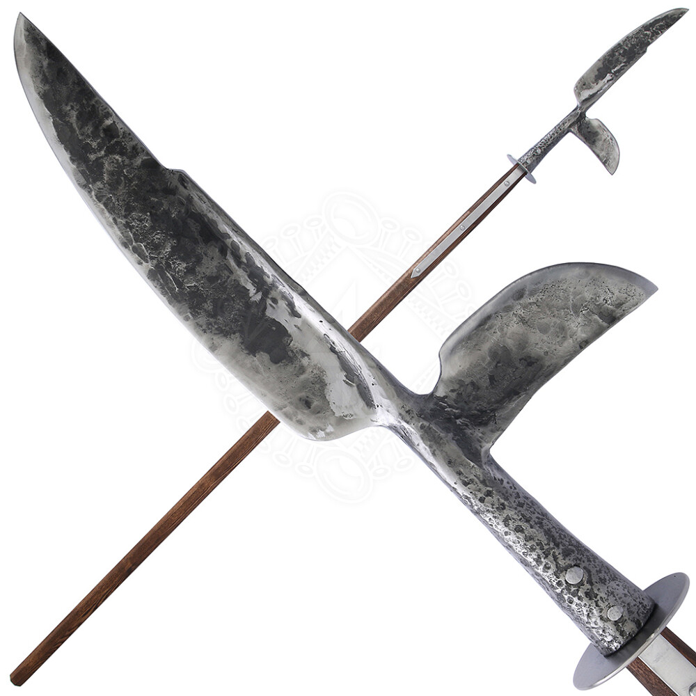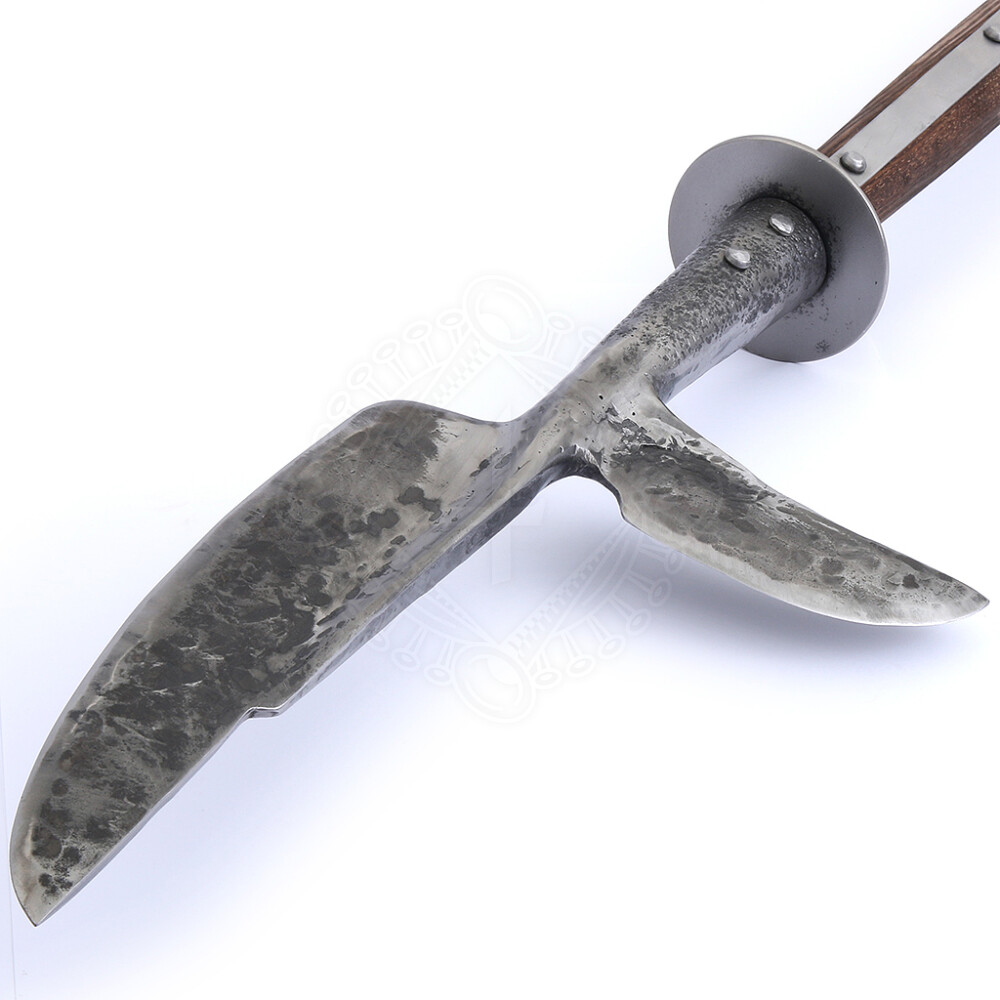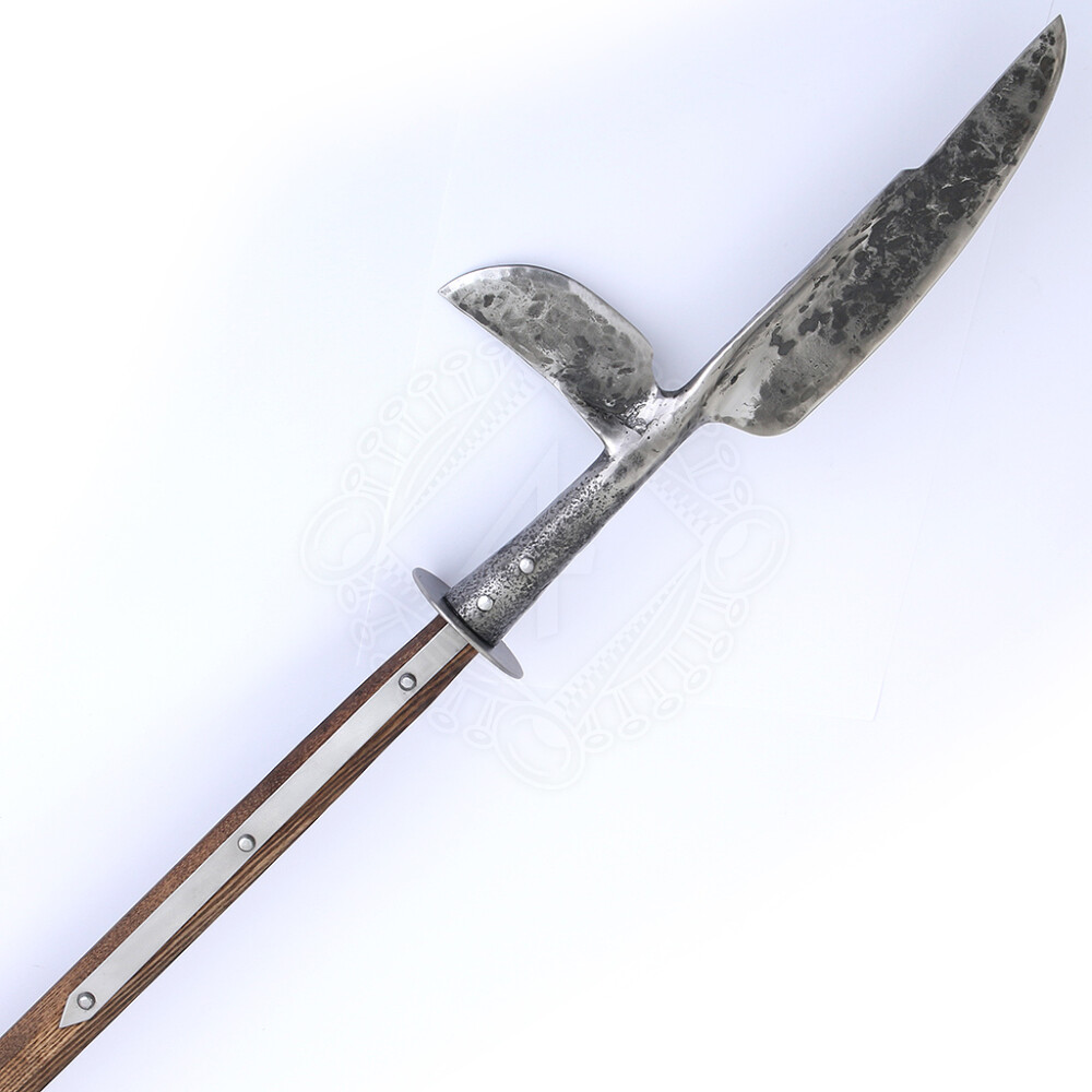 Beachten Sie bitte: Originale der Stangenwaffen erreichten oft Längen von über zwei mehr. Das ist mehr, als die Beschränkung für den Transport erlaubt. Wenn Sie die Waffenreplik mit Holzstiel bestellen, liefern wir sie zerlegt in Teilen mit einem Ca 198cm langen Holzstiel. Die Teile werden Sie aber nach Erhalt selbst zusammenstellen müssen. Nötiges Material zur Verbindung einzelner Teile einschließlich der Metallbeschlägen auf dem Schaft und der Lederfransen werden mitgeliefert.