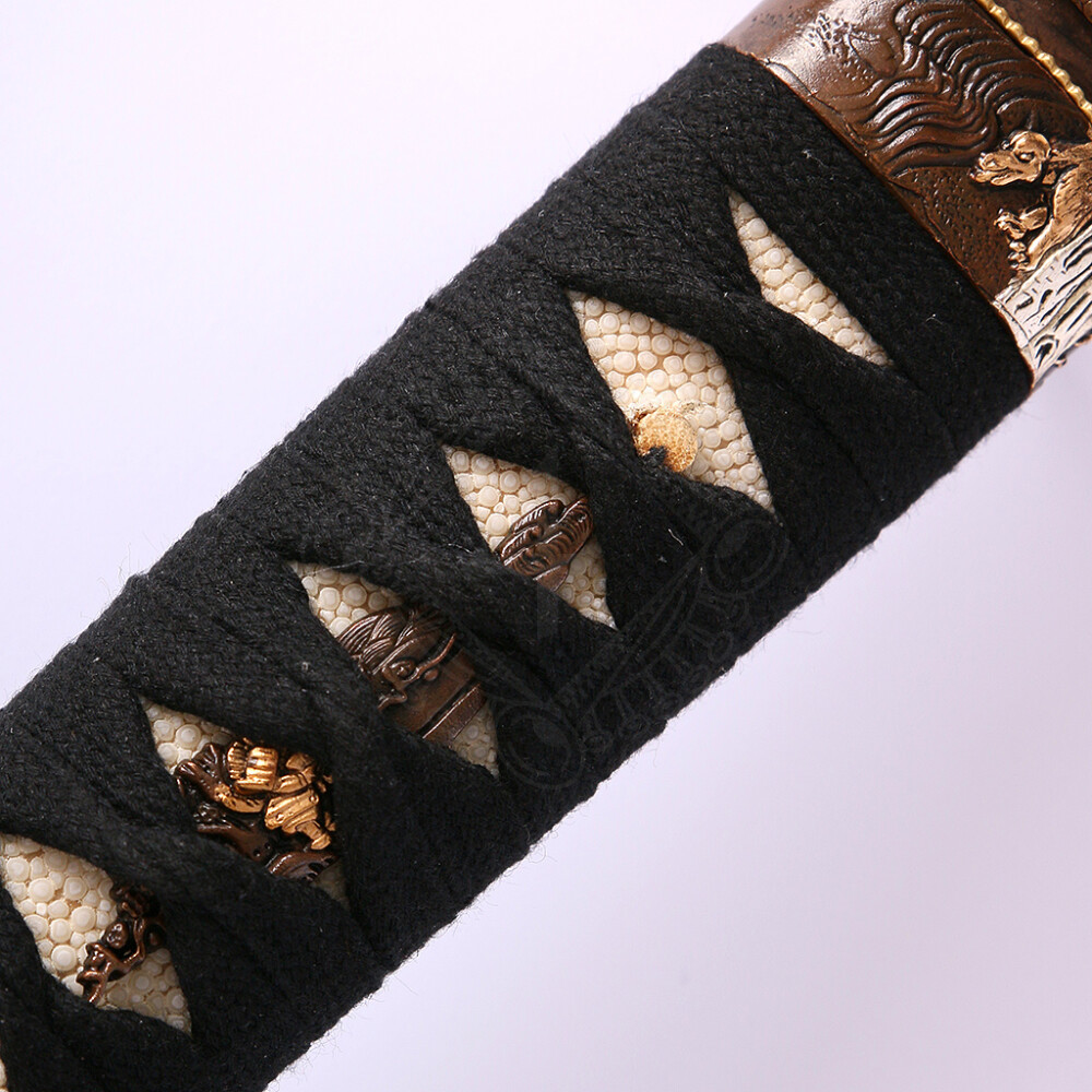 - Die traditionelle Griffwicklung ist mit echter Rochenhaut unterlegt.