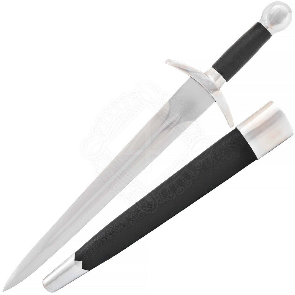 Tauche ein in die raue Welt des frühen Mittelalters! Dieser beeindruckende mittelalterliche Dolch aus dem 11. Jahrhundert ist ein absolutes Muss für deine Sammlung historischer Waffenrepliken oder die perfekte Ergänzung für deine authentische Gewandung. Die Kombination aus einer handgeschmiedeten Stahlklinge, einem massiven Hartholzgriff mit echtem Lederbezug und robusten Metallbeschlägen verleiht dieser Waffe ein faszinierendes, historisches Aussehen. Der Dolch wird komplett mit einer maßgefertigten, lederbezogenen Scheide geliefert. Obwohl es sich um eine dekorative Version (Dekoversion) handelt, vermittelt das stattliche Gewicht von über einem Kilogramm das unverwechselbare Gefühl, eine echte Waffe der alten Krieger in den Händen zu halten. Hol dir dieses Stück greifbare Geschichte direkt nach Hause! Weitere Produktinformationen ...