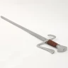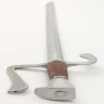 Die in Öl gehärtete Federstahlklinge ist bis zum Knauf durchgeschmiedet und am Griffende vernietet. Die Klingenangel ist mit Hartholz belegt und mit echtem Leder umgewickelt. Parierstange und Knauf sind aus Stahl. Sowohl die Klingenschneide, als auch die Schwertspitze ist stumpf und abgerundet.