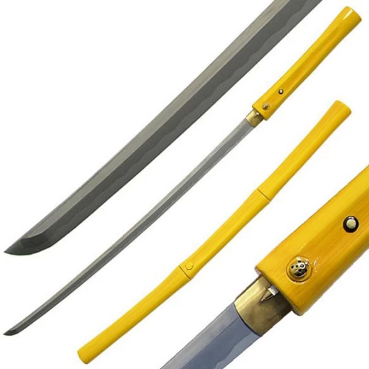 Im Jahre 1876 wurden den Samurai verboten, ihre Schwerter zu tragen. Dieser Versuch, eine tausendjährige Tradition zu beenden war von der stolzen Kriegerklasse nicht gut emfangen. So war diese „Knüppel-Katana“ geboren. Harmlose Spazierstöcke verborgen verehrten Klingen und das Katana-Phänomen lebte weiter. Der Bambusstock Katana von Hanwei kombiniert einen kunstvoll geschnitzten Bambus Scheide und Griff mit einer Klinge (Nagasa), das aus 1065 High-Carbon Stahl handgeschmiedet ist und differentiell in einem herkömmlichen Lehmbestrich-Verfahren gehärtet ist. Weitere Produktinformationen ...