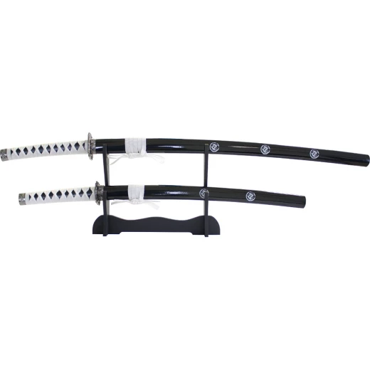 Das Samurai-Set besteht aus Katana, Wakizashi und Holzständer. Die Klingen sind aus Kohlenstoffstahl (nicht rostfrei). Die Scheiden sind aus Holz, schwarz lackiert. Weitere Produktinformationen ...