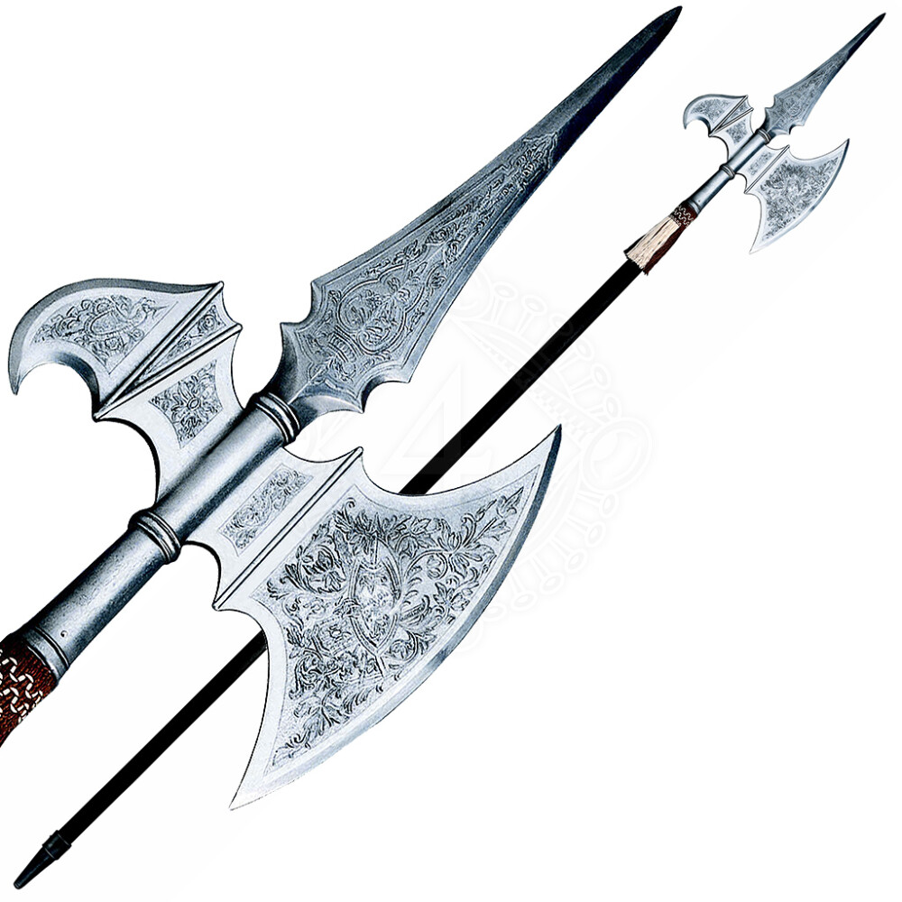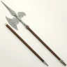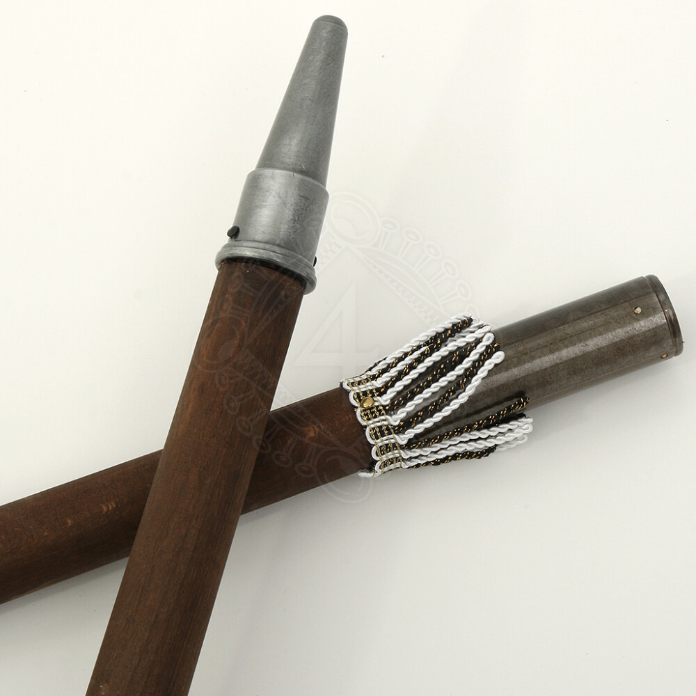 Beachten Sie bitte: Originale der Stangenwaffen erreichten oft Längen von über zwei mehr. Das ist mehr, als die Beschränkung für den Transport erlaubt. Wenn Sie die Waffenreplik mit Holzstiel bestellen, liefern wir sie zerlegt in Teilen mit einem Ca 198cm langen Holzstiel. Die Teile werden Sie aber nach Erhalt selbst zusammenstellen müssen. Nötiges Material zur Verbindung einzelner Teile einschließlich der Metallbeschlägen auf dem Schaft und der Lederfransen werden mitgeliefert.