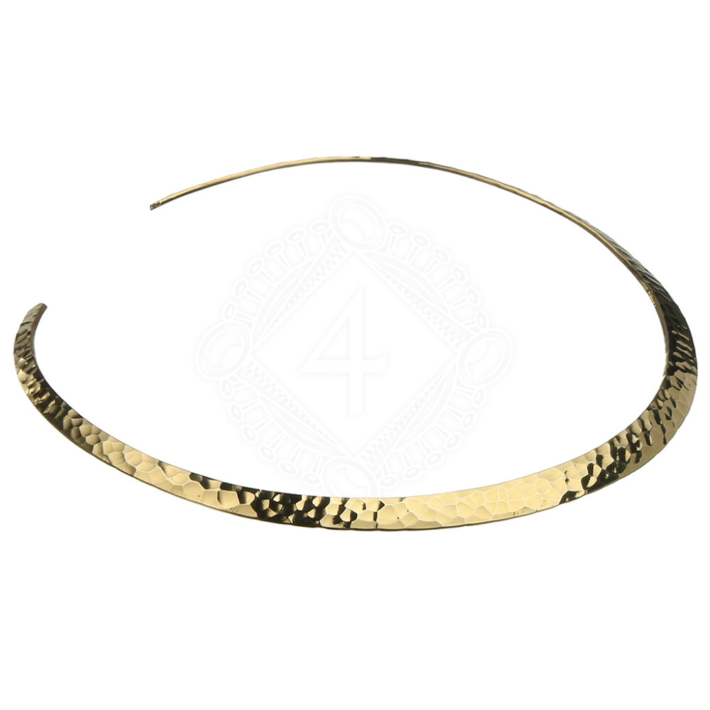 Ein wikingerzeitlicher, flacher Torques (auch Halsreif genannt) aus Messing. Er ist von Hand gehämmert. Der Torques hat einen Durchmesser von ca. 13cm und ist in der Größe individuell anpassbar. Messing hat die gute Eigenschaft, das es zum einen wie Gold aussieht und zum anderen kann es auf die Haut nicht abfärben wie zum Beispiel bei Bronze. Weitere Produktinformationen ...