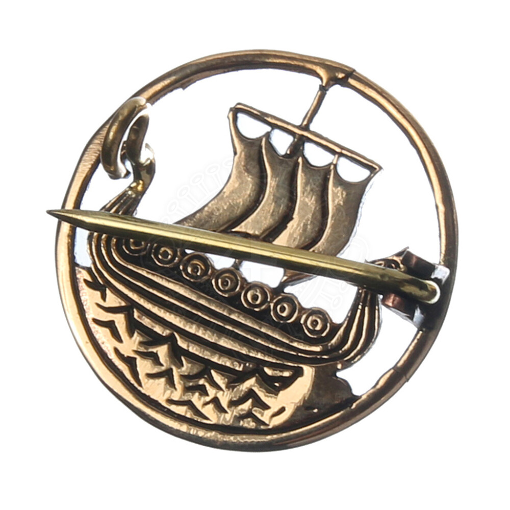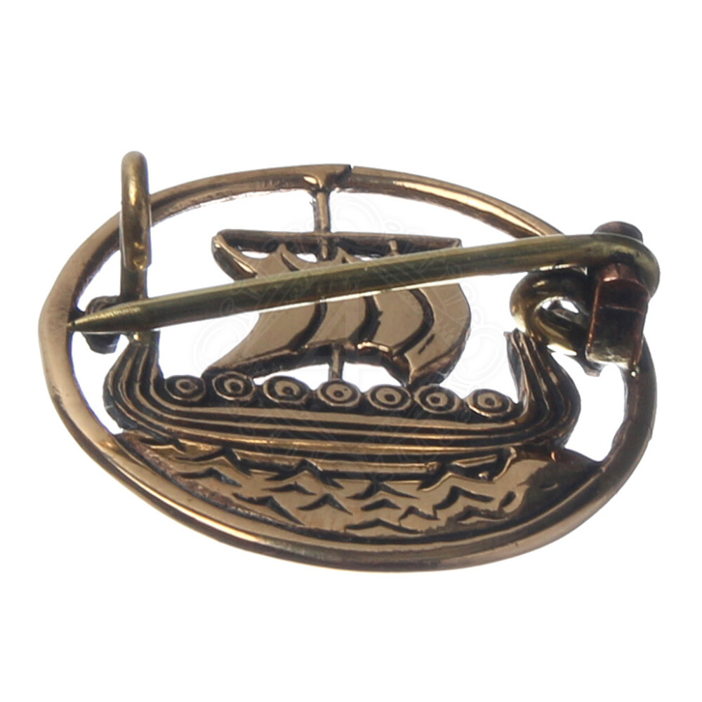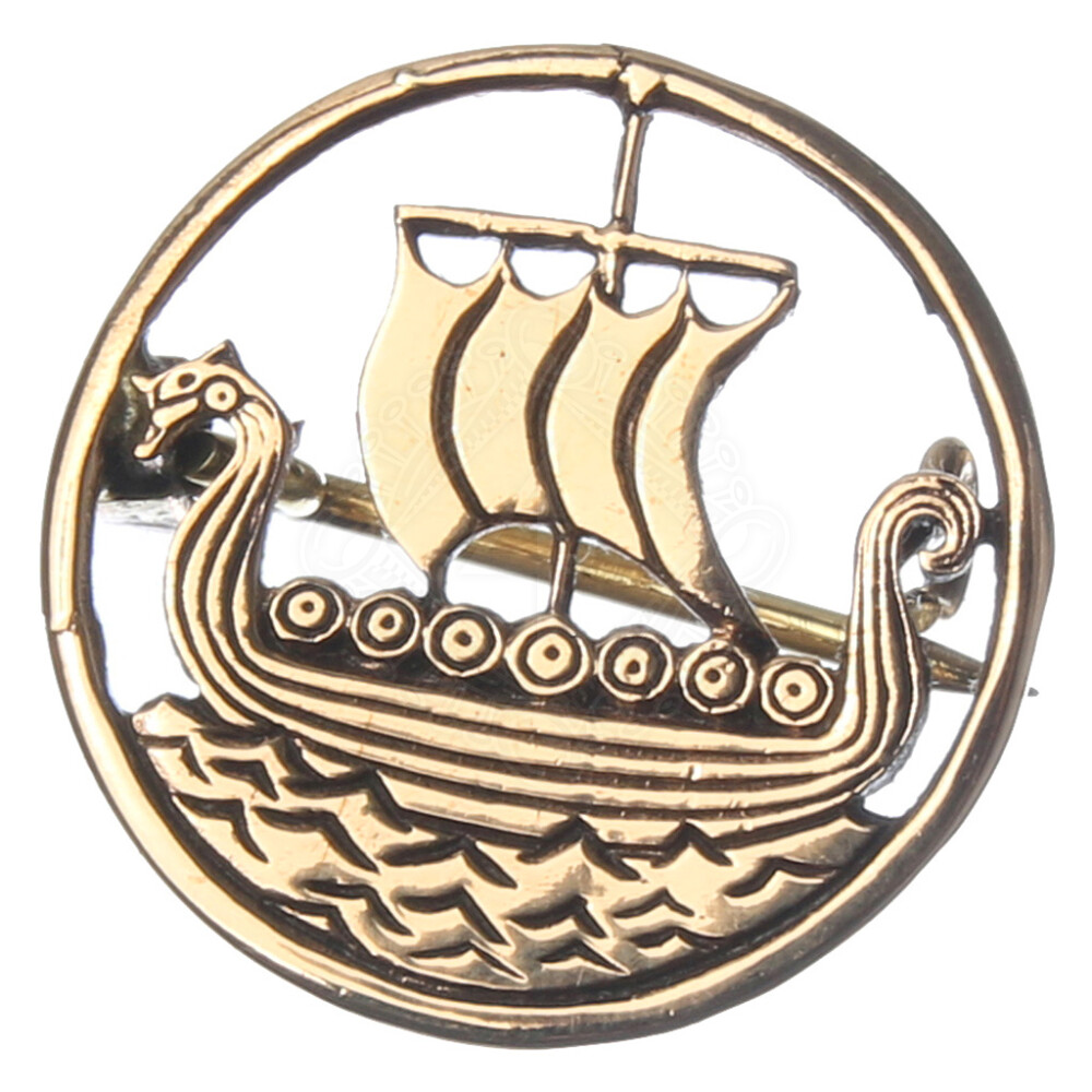 Eine wikingerzeitliche Gewandschließe mit einem Drachenboot als Motiv. Die Fibel ist aus Bronze gefertigt und wird mittels einer hinten angebrachten Nadel befestigt. Weitere Produktinformationen ...